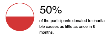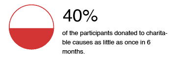 A Leetchi.com survey of 2,500 respondents found that 79% of individuals aged 18–35 are inclined to contribute to charity, compared to 42% of those over 55. Additionally, 50% of 18–24-year-olds and 40% of 25–34-year-olds prefer using crowdfunding platforms to donate directly to individuals rather than through traditional charities, due to concerns over commission fees deducted by third parties.