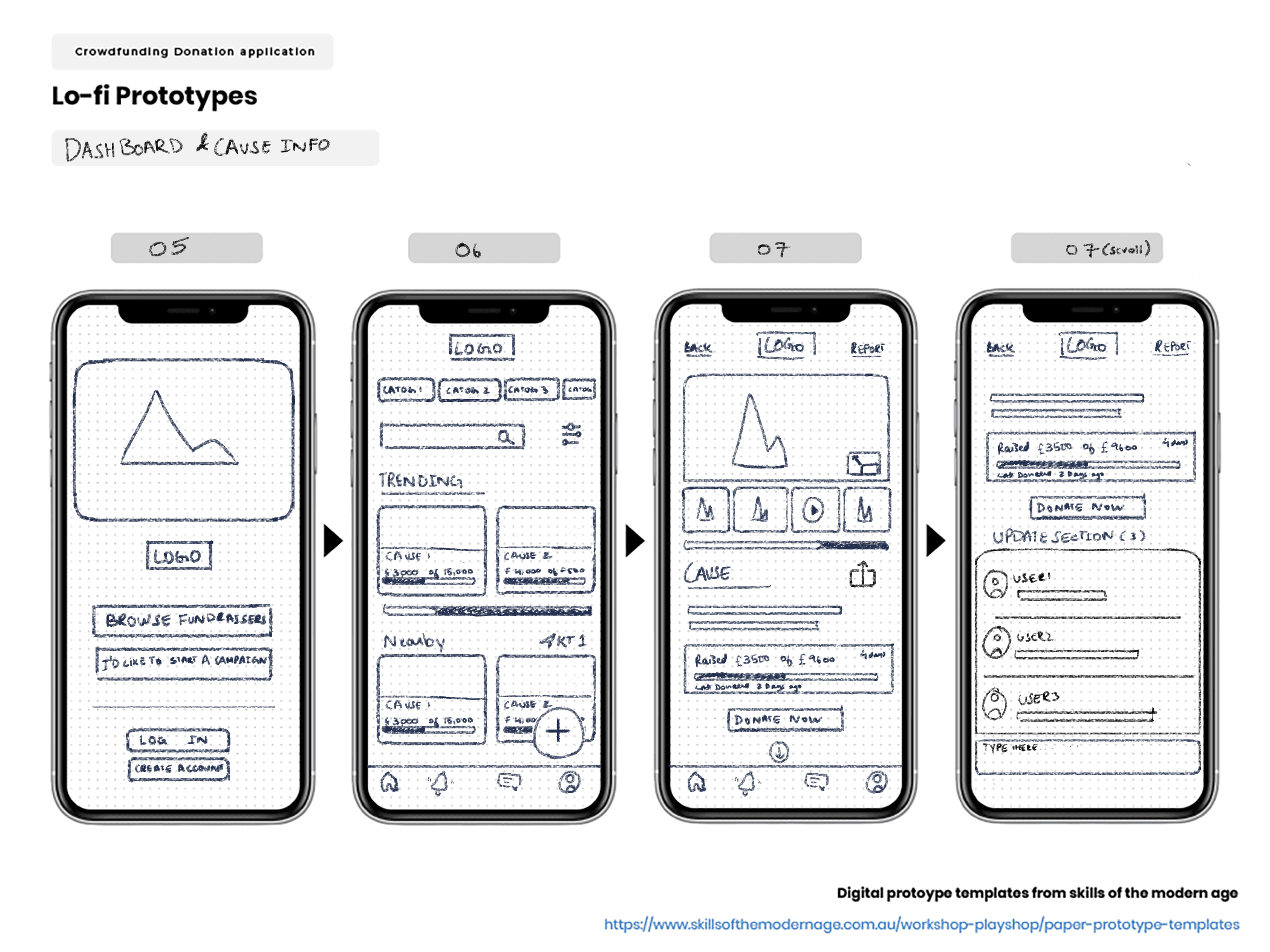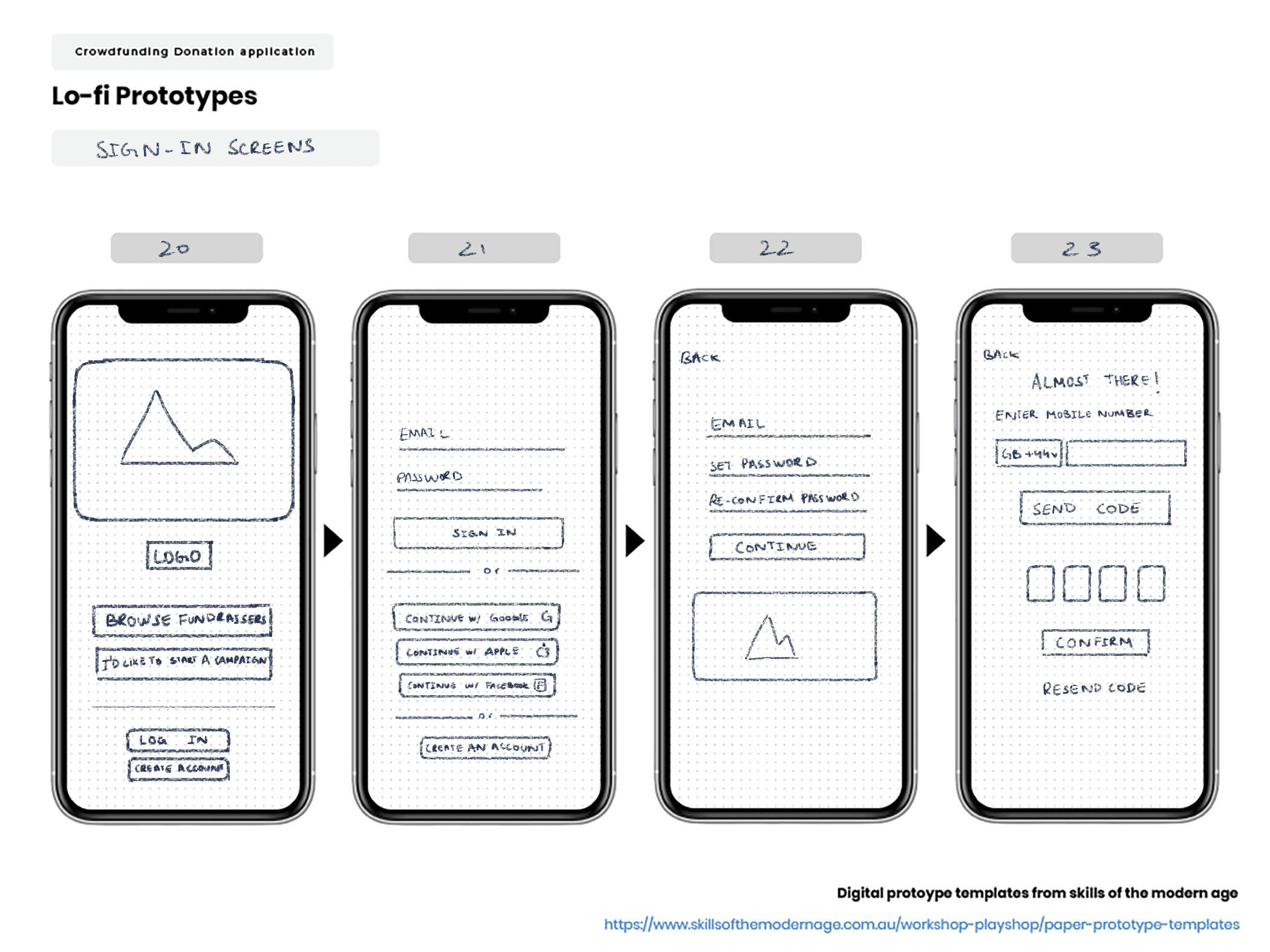 Lo-fi paper prototypes were created to kickstart the prototyping process.