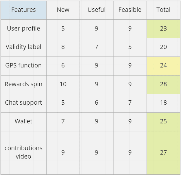 NUF test was conducted to prioritize the features that were to be developed for the protoype.