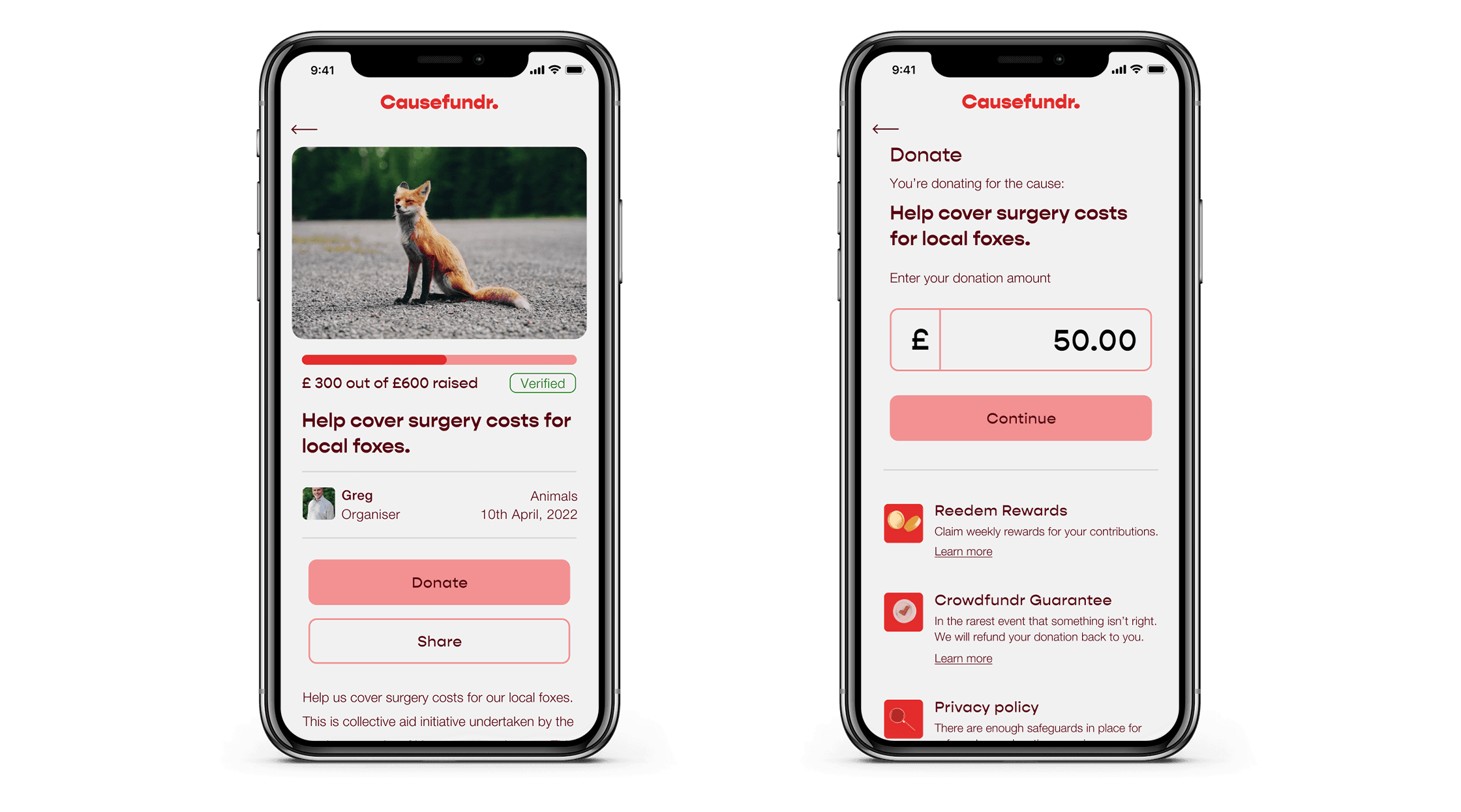 UX Case study on Causefundr., a crowd-funding charity application for millennials in the UK driven by a reward system.